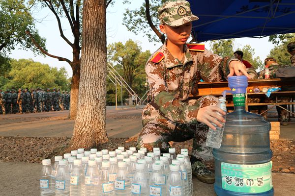 “暑假的时候,我就很期待大学的军训,期待和来自五湖四海的同学一起流汗、一起锻炼,但因为身体原因,遗憾不能参加军训……”二营一连三排的吴乐天因为有哮喘病史,不能剧烈运动,辅导员和助班出于安全考虑,劝说他进了伤病营。虽然不能军训,但他却没有闲着,军训感言以及内务卫生,吴乐天总是高质量的完成。同时他还默默做起了一名服务同学的“后勤保障兵”。同学们水瓶上的标签他一个个认真地贴好,谁的水瓶没有水,他总是第一时间添满,将瓶子摆得整整齐齐,以保证同学休息时有水喝。同学上训时,他主动保管全班的手机,30台手机装满了整个书包,一直放在他身边。在伤病营的帐篷里,只要一有中暑或受伤的同学被搀扶进来,吴乐天便会马上腾出座位,为他们递水、拿药。“那天我中暑了,他就在帐篷里照顾我,帮我拿药接水、陪我说话,很感谢他。”室友王鹏说道。随后,吴天乐谈到:“不能参加军训,多少都会遗憾,所以我想尽自己的力量为同学们服务,用这种方式告诉大家,虽然不能一起军训,但我一直都在,一直都在与大家共同的坚持”。