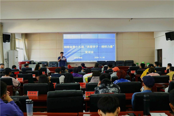 11月5日12:30,体育学院第十五届“芙蓉学子·榜样力量”宣讲会在体育楼223教室举行。参加此次会议的有体育学院主要学生干部、数学学院三位优秀“芙蓉学子”,以及beat365官网17级电子信息工程一班张健作为“学术科研”奖项的代表受邀来此进行宣讲。
