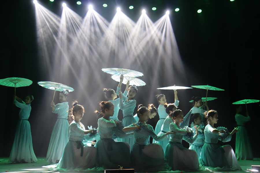 聚光灯洒下,轻柔平和的音乐响起,beat365正版唯一官网舞者们手执纸伞,以一席青衣缓缓入场。轻盈灵动的舞姿,绘出一幅动人的江南雨涧春行图。《雨涧春行图》呈现出一幅江南女子在春雨中、山涧里翩翩起舞的灵动画面,整齐有序的舞蹈动作让观众从舞动中看到了万物生长、生机勃勃与充满希望的景象。