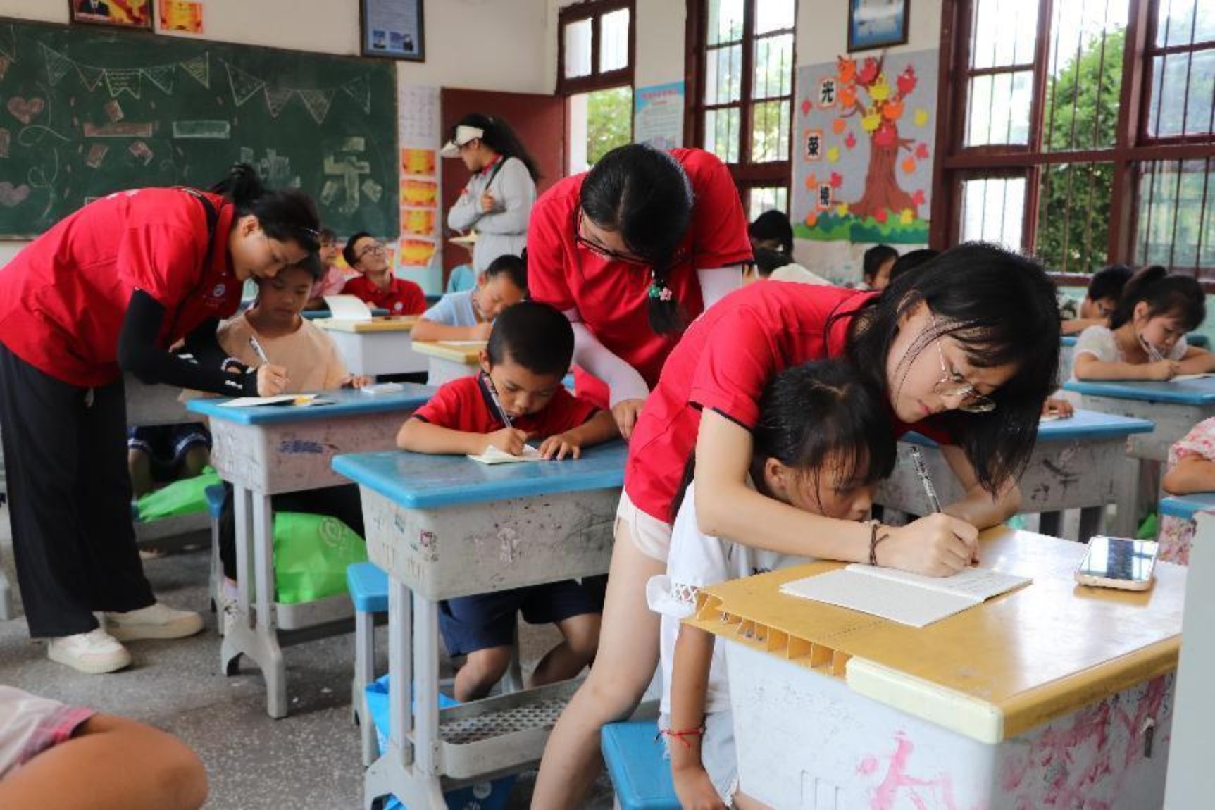 图 实践团队指导小朋友们正确握笔姿势